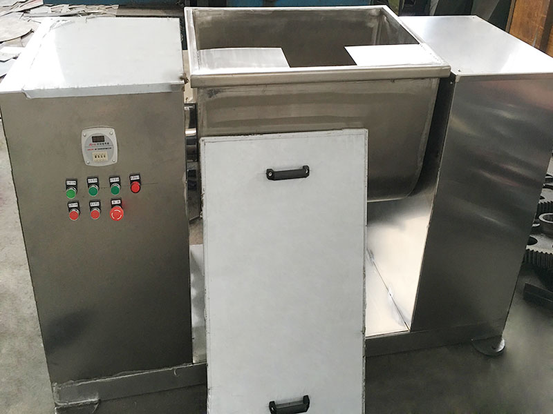 性能特点: 1、槽体采用材料为304-2B4.0mm不锈钢板制作,机箱外壳采用304-2B1.5mm不锈钢板制作; 2、搅拌浆叶与槽体之间隙小,拌粉无死角; 3、搅拌轴两侧设有密封装置,以防止物料外泄。 4、拌粉效率高,拌粉效率比一般拌粉机提高25%以上,能保持物料的完整性, 不对外界产生污染; 5、操作方便,出料时将槽体倾斜180度,出料完全,清洗方便。